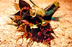The beautiful Brooke & a bouquet of Roses, mini red Orchids, Lucedendron, and Fiddle Head Ferns